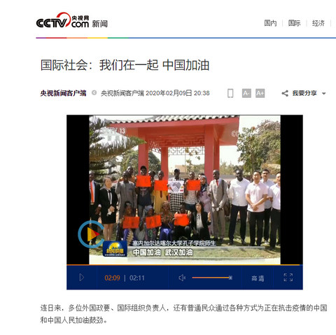 中央电视台“新闻联播”报道我校塞内加尔孔子学院师生为中国、为武汉加油-国产一区二区日本在线