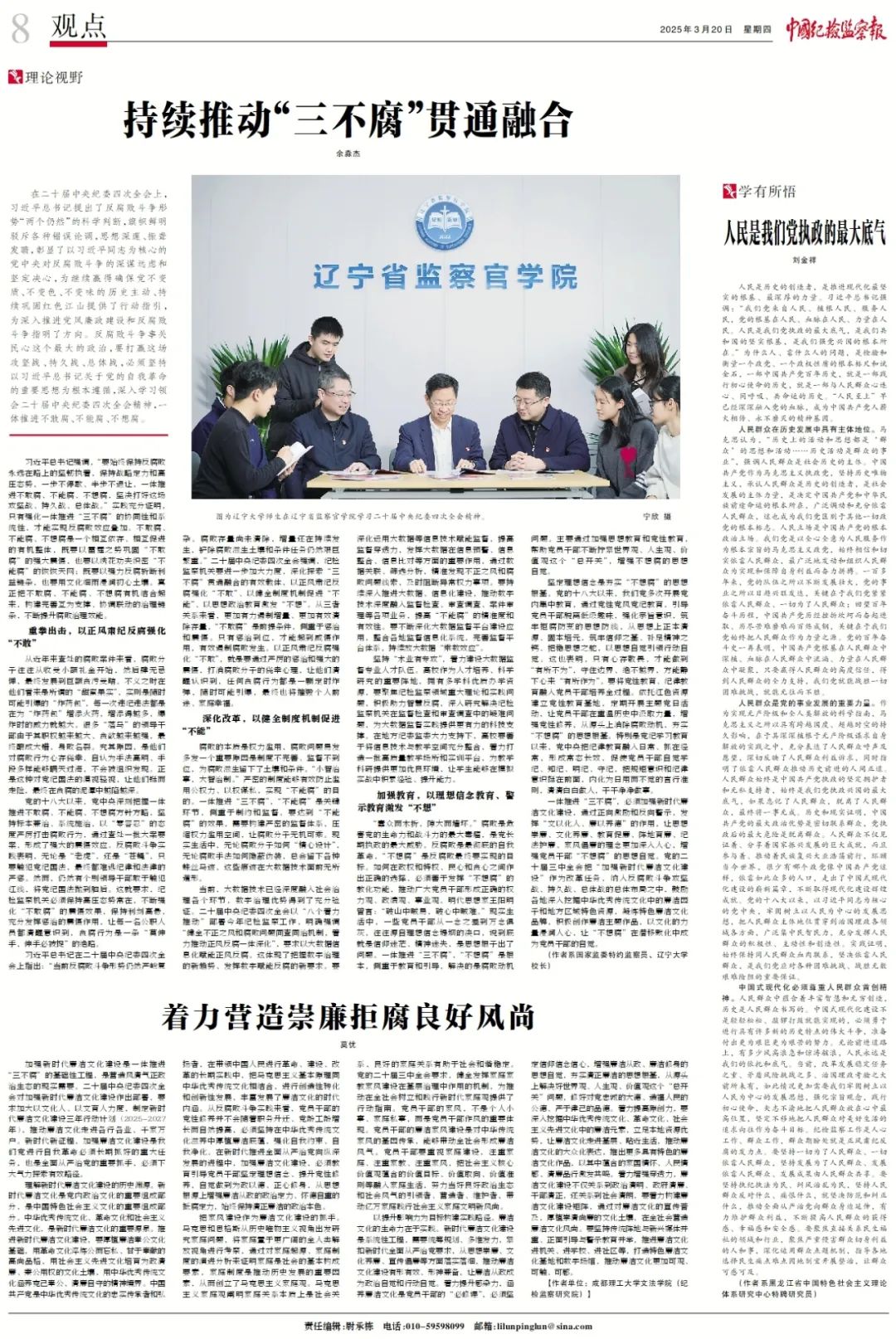 中国纪检监察报 | 余淼杰:持续推动“三不腐”贯通融合